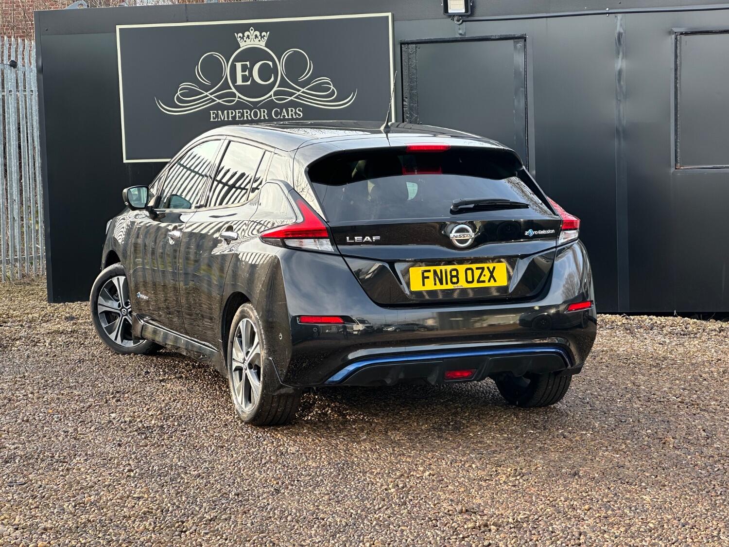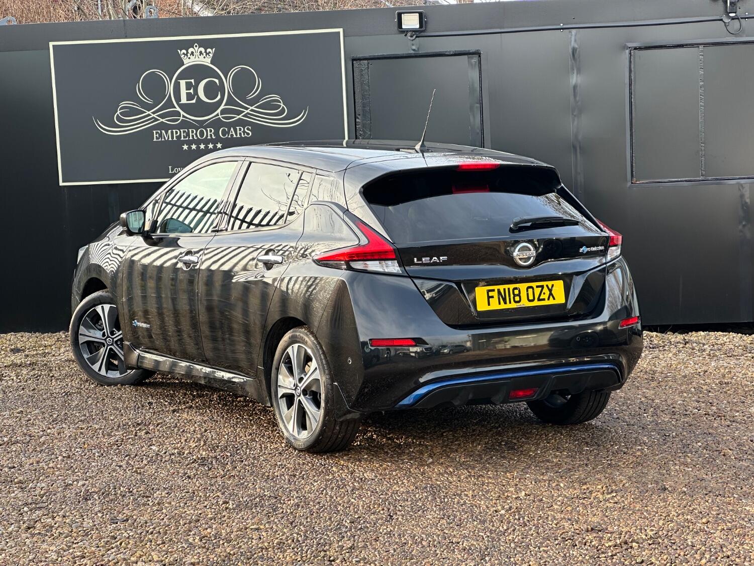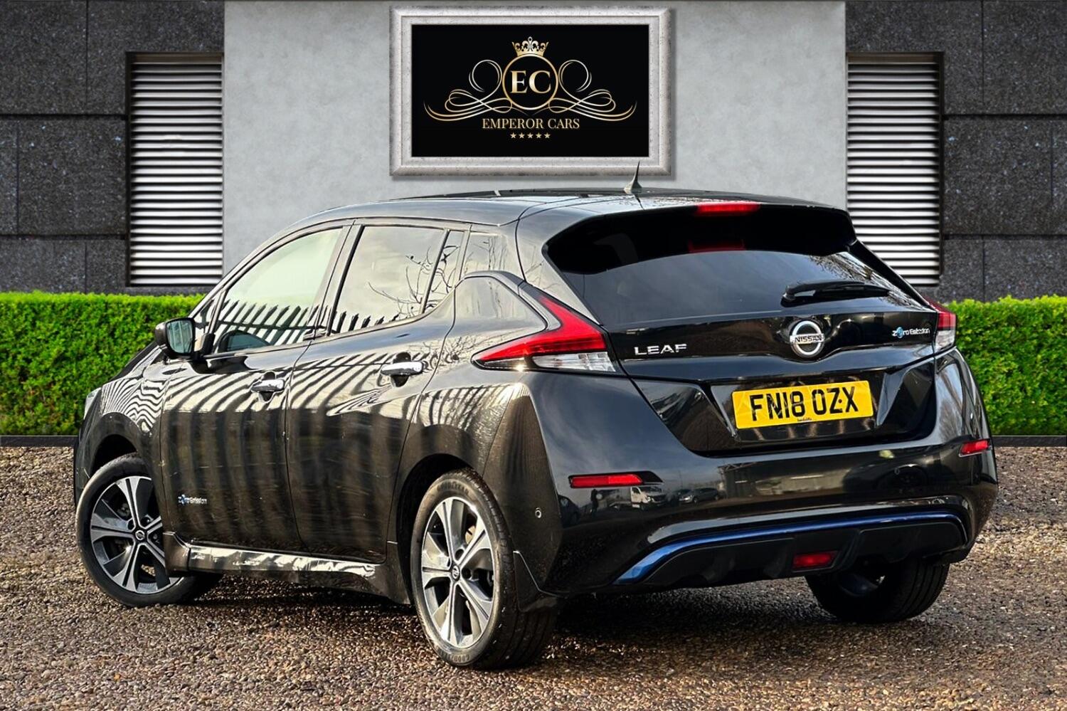 For sale at Emperor Cars Ltd, we proudly present a 2018 Nissan Leaf 40kWh Tekna Hatchback 5dr Electric Auto (150 ps), an excellent example in the used car market. Its sleek black metallic finish complements its modern, eco-friendly design. Despite its age and mileage, this vehicle remains in great condition, offering tremendous value for a savvy buyer.