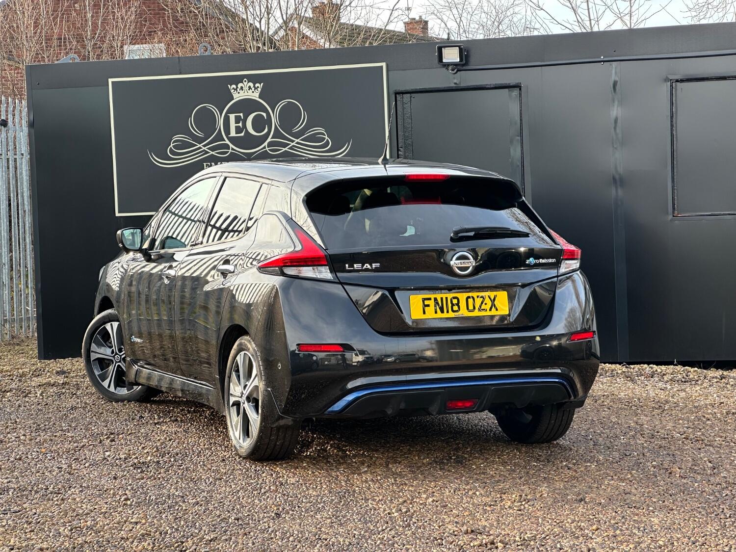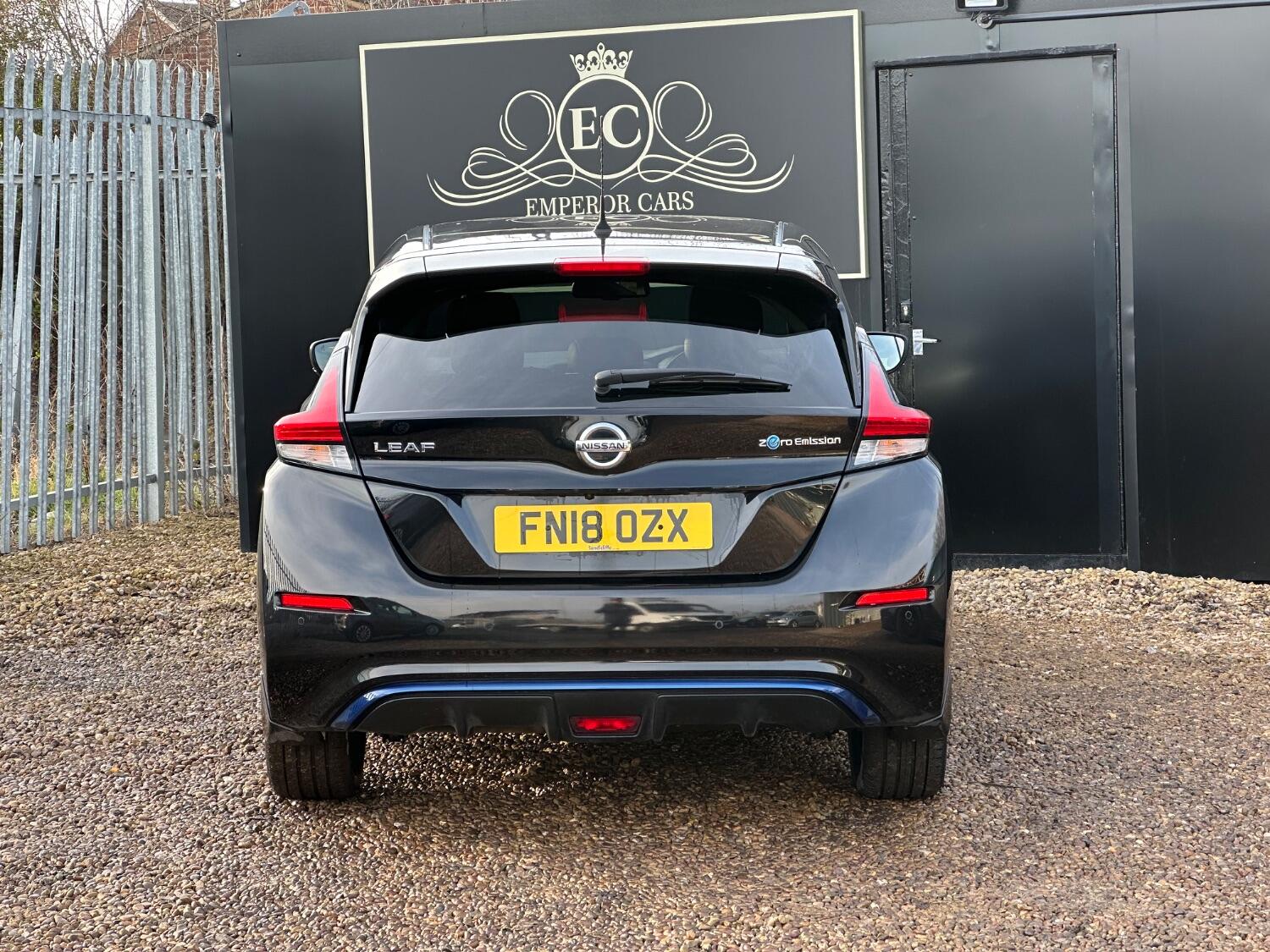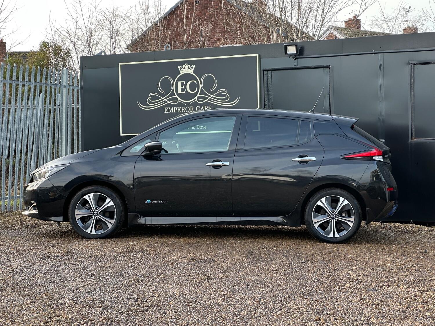 For sale at Emperor Cars Ltd, we proudly present a 2018 Nissan Leaf 40kWh Tekna Hatchback 5dr Electric Auto (150 ps), an excellent example in the used car market. Its sleek black metallic finish complements its modern, eco-friendly design. Despite its age and mileage, this vehicle remains in great condition, offering tremendous value for a savvy buyer.